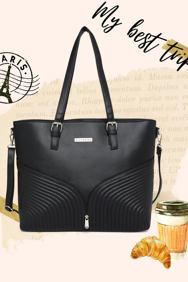 Buy CAPRESE Black Zipper Clouser Marvel Faux Leather Women Formal Wear Tote Handbag Shoppers Stop Very well made.