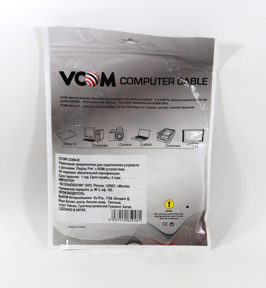 DisplayPort M HDMI M 1.8m VCOM CG494 B Very well made.