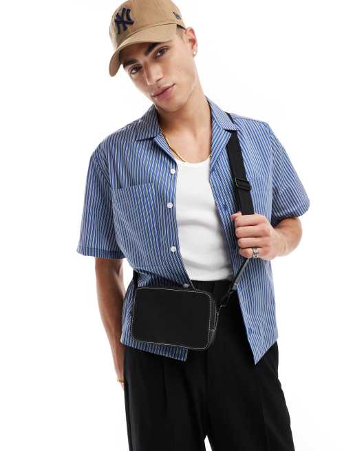 ASOS DESIGN faux leather cross body camera bag in black with contrast stitch ASOS Very well made.