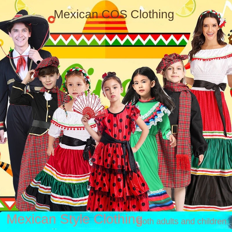 Halloween Mexican Ethnic StylecosClothing Cloak Straw Hat Adult and Children Performance Costume Very well made.