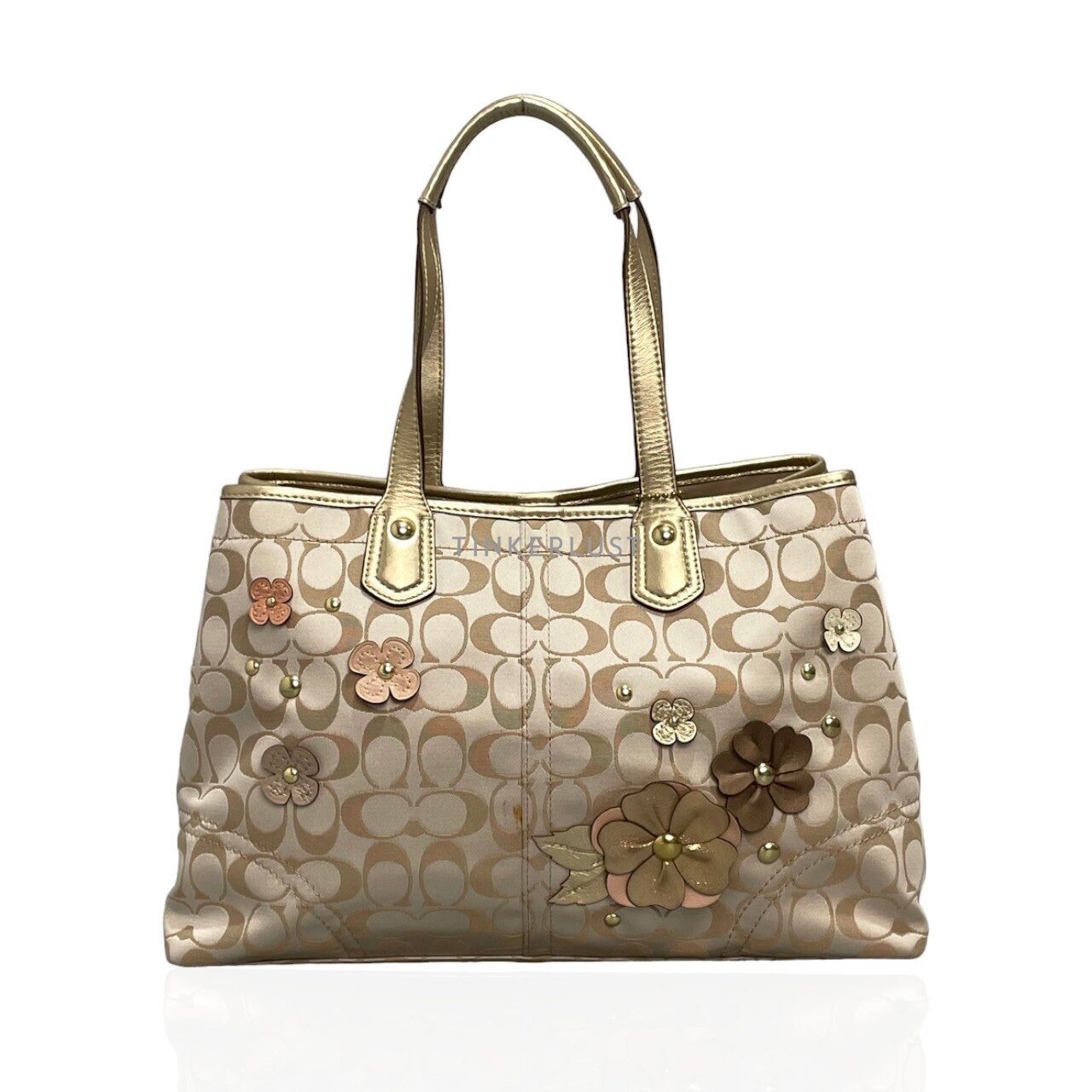 COACH SIGNATURE Floral Applique Khaki Tote Handbag Limited Edition Gold Brown Etsy Very well made.