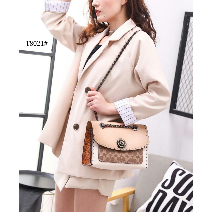 Jual High Premium Coach Parker in Signature Canvas with Rivets and Snakeskin Detail T8021 Shopee Indonesia Very well made.