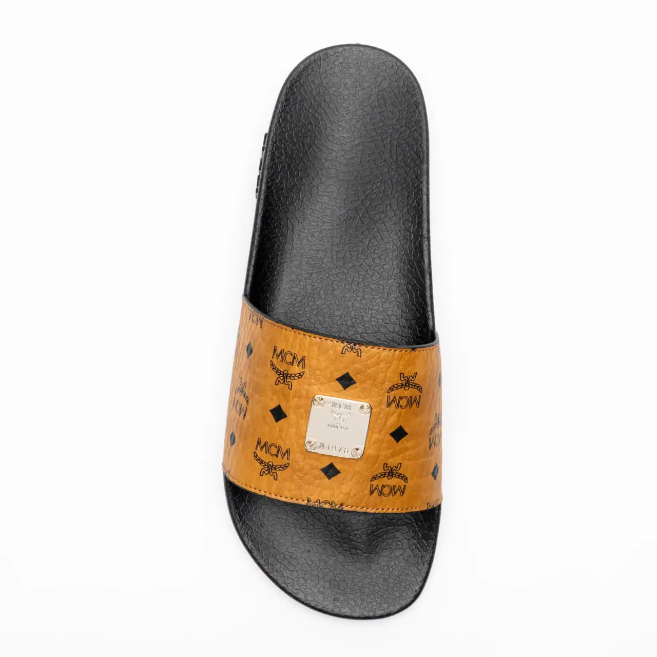 MCM Visetos Slide Sandal in Cognac Smart Closet Very well made.