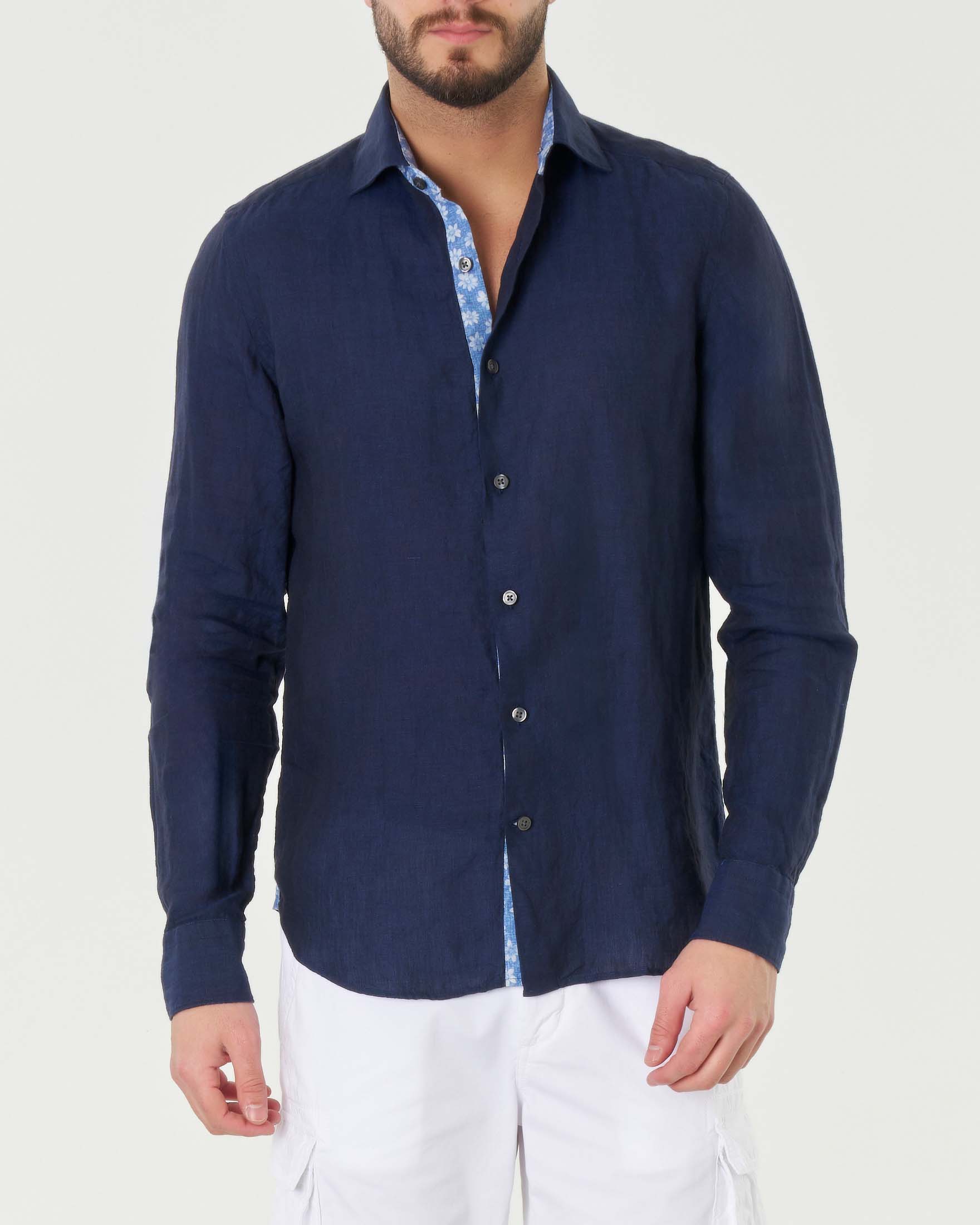 Camicia blu in puro lino con collo alla francese Very well made.