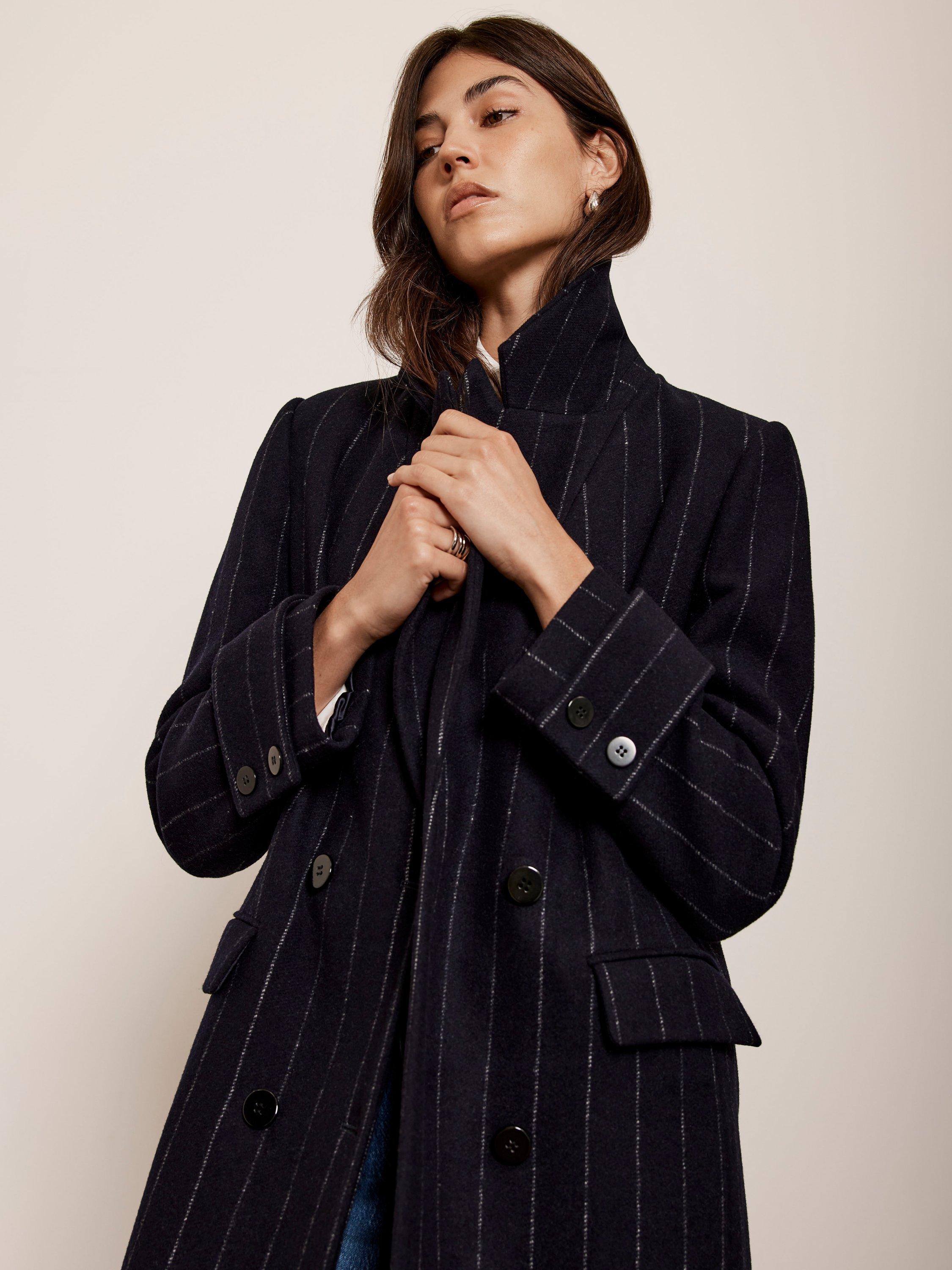 Mint Velvet Wool Blend Pinstripe Crombie Coat Navy Very well made.