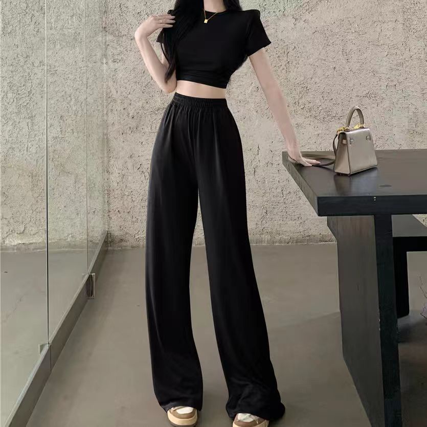 Ladies Pants Sets Autumn Square Collar Folds Crop Top Casual Long Pants Two Piece Set Women Solid Trouser Suits on OnBuy Very well made.