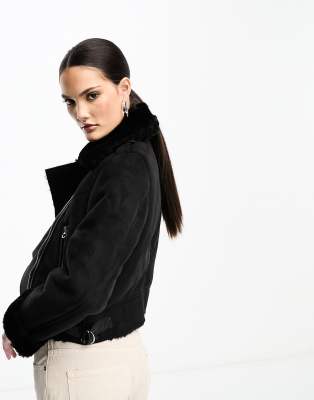 Cropped Borg Trim Aviator Jacket boohoo Very well made.