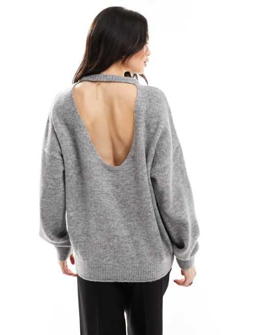 ASOS DESIGN slash neck jumper with cut out back in grey ASOS Very well made.