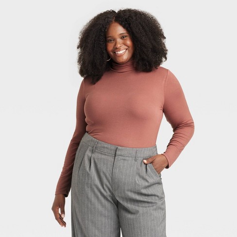 Women s Long Sleeve Mock Turtleneck Ribbed T shirt A New Day Rust Xxl Target Very well made.