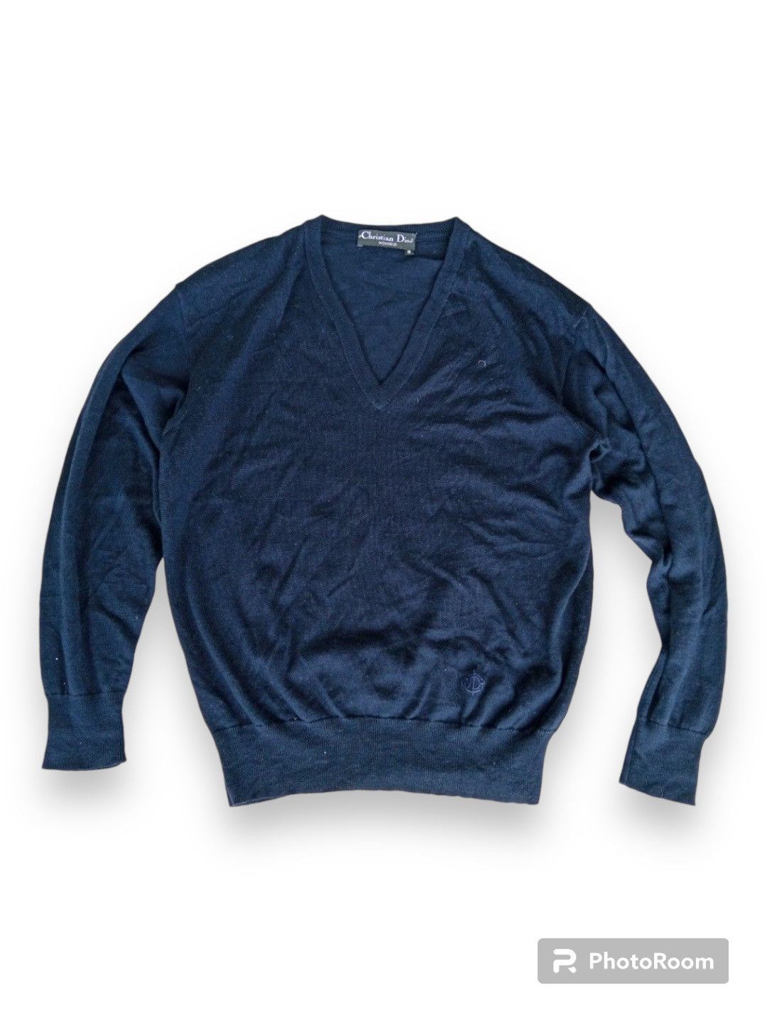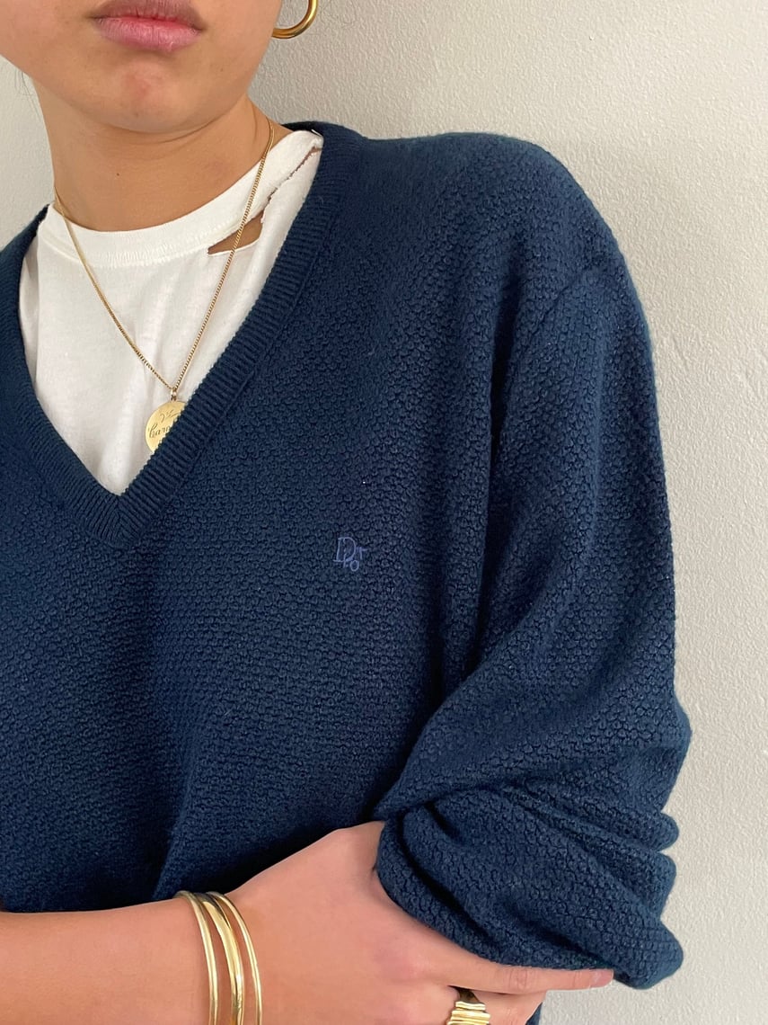 70s Dior sweater vintage Christian Dior Monsieur navy blue V Recap Vintage Studio Philadelphia PA Very well made.