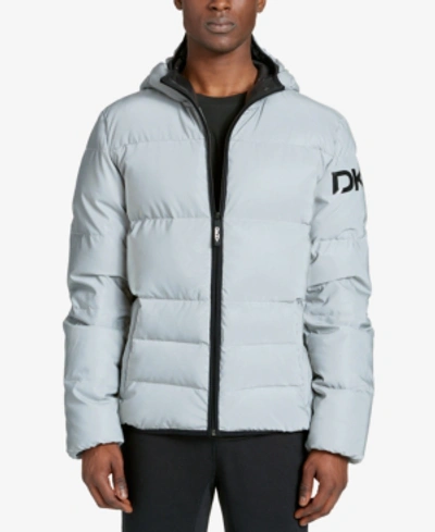 Shop Dkny Men s Mid length Hooded Puffer Jacket In Silver Satin Reflective Very well made.