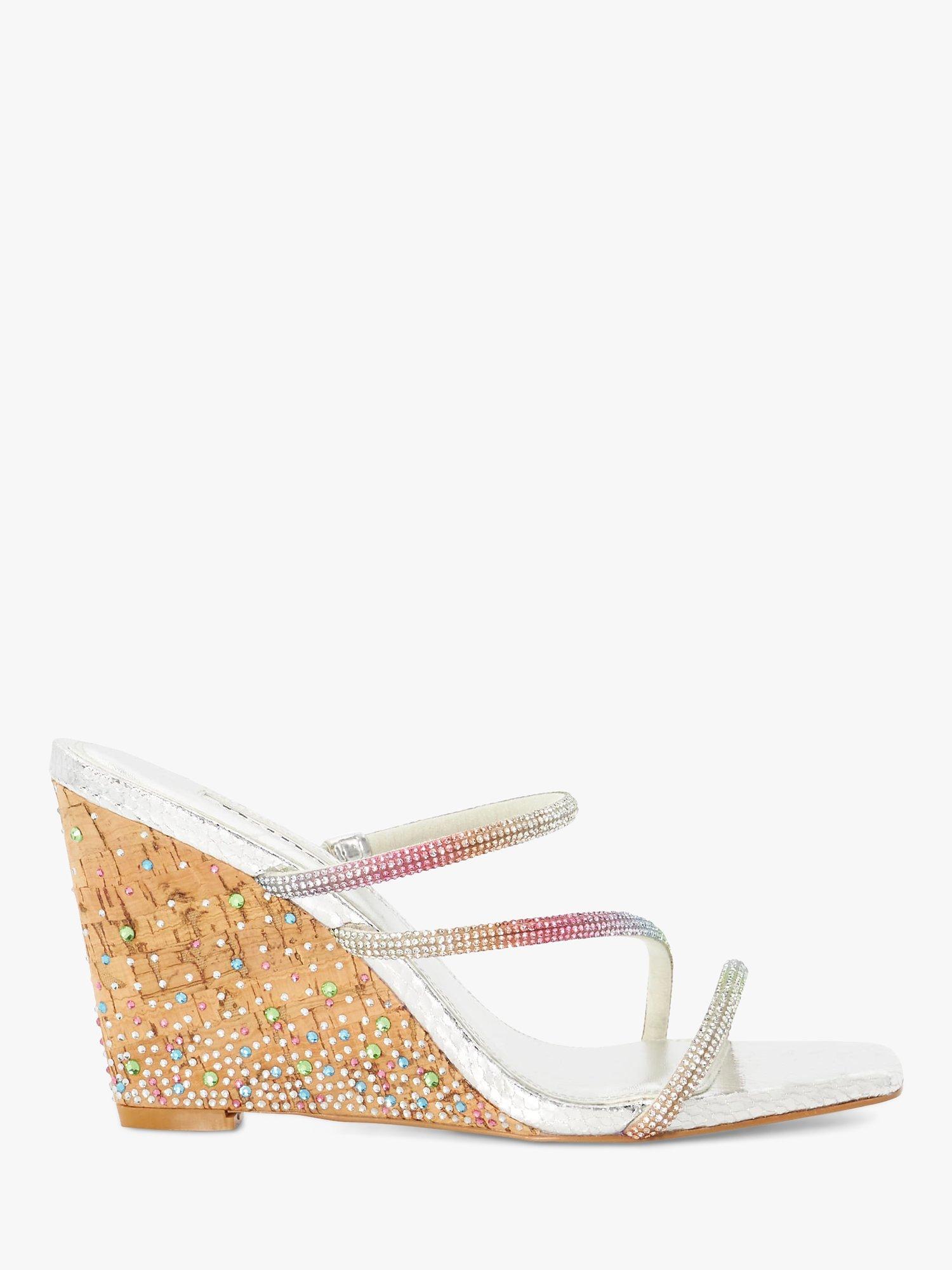 Dune Miri Crystal Cork Wedge Sandals Silver Multi Very well made.