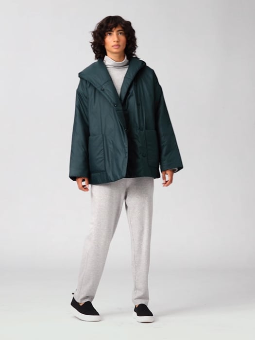 Eggshell Recycled Nylon Hooded Coat EILEEN FISHER Very well made.