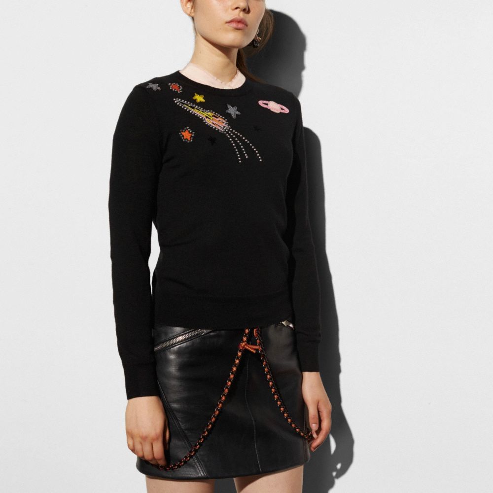GREY CRYSTAL EMBELLISHED SWEATER IN WOOL Very well made.