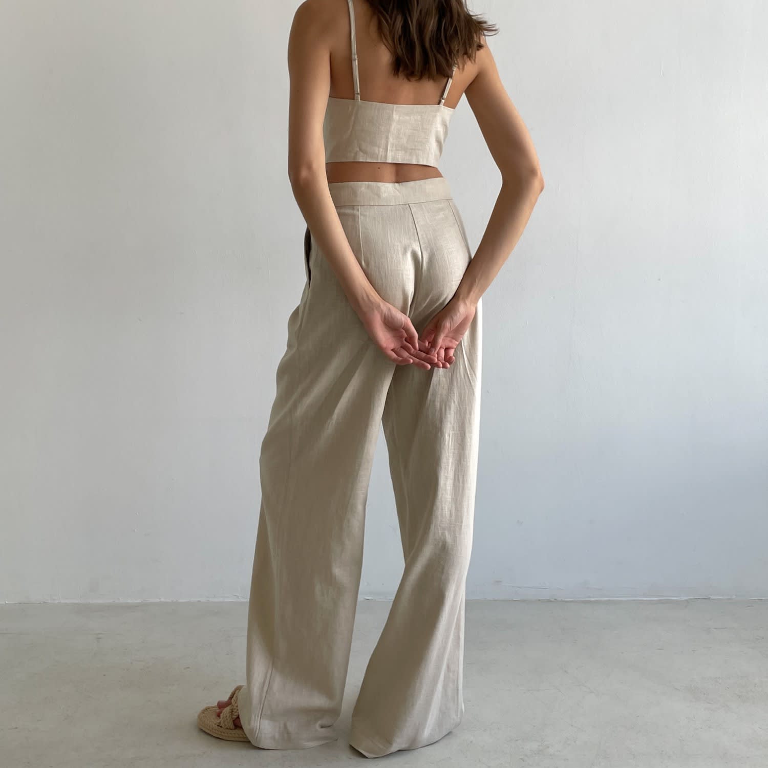 Extra Tall Beige Linen Trousers Straight High Waisted Adjustable by KK Very well made.