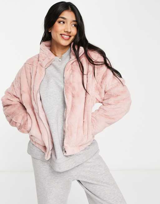 Cotton On faux fur cropped jacket in pink Very well made.