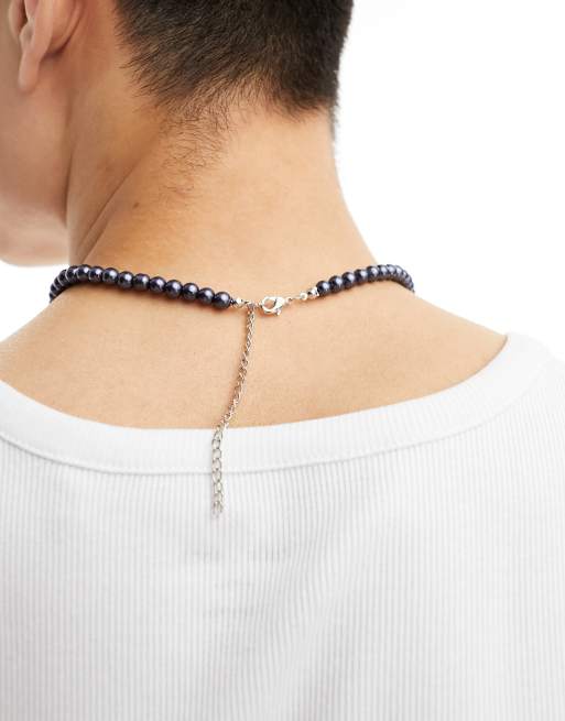 ASOS DESIGN faux pearl necklace in dark gray ASOS Very well made.