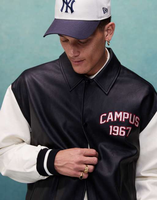 ASOS DESIGN oversized varsity jacket in black with faux leather sleeves ASOS Very well made.