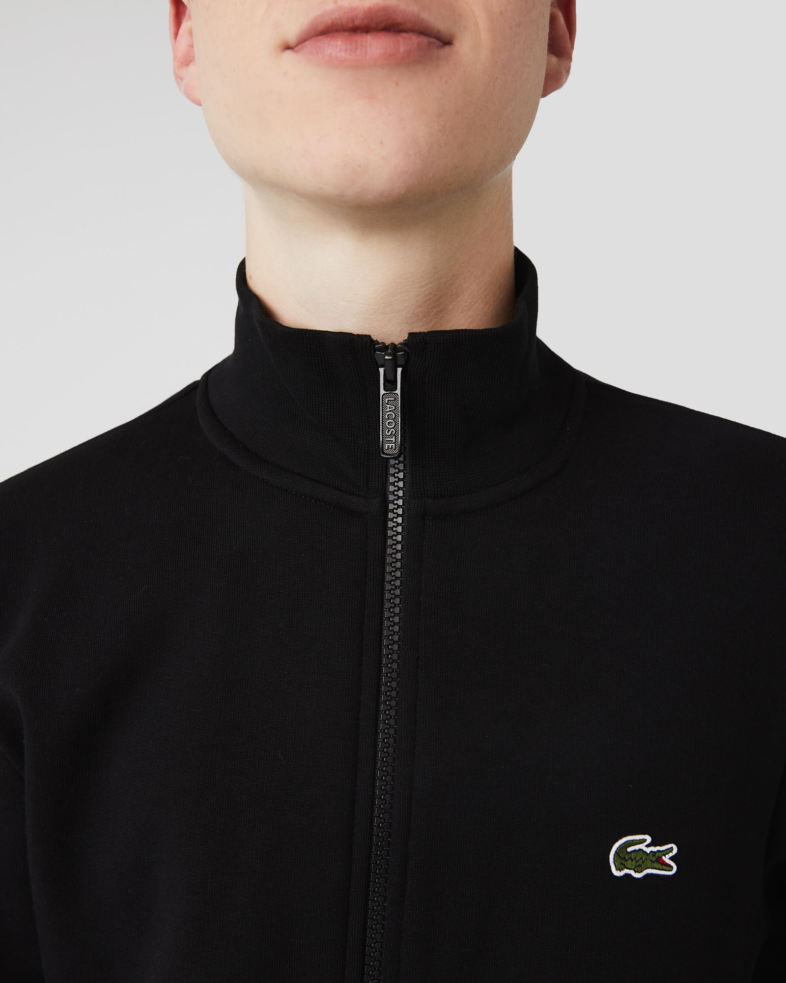 LACOSTE Felpa nera in cotone con collo alto e zip Strikestore Very well made.