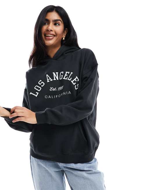 Pull Bear Felpa nera con cappuccio e stampa Los Angeles ASOS Very well made.