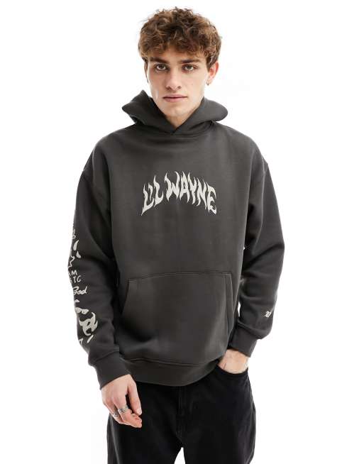 Pull Bear Lil Wayne Felpa con cappuccio nera stampata Very well made.