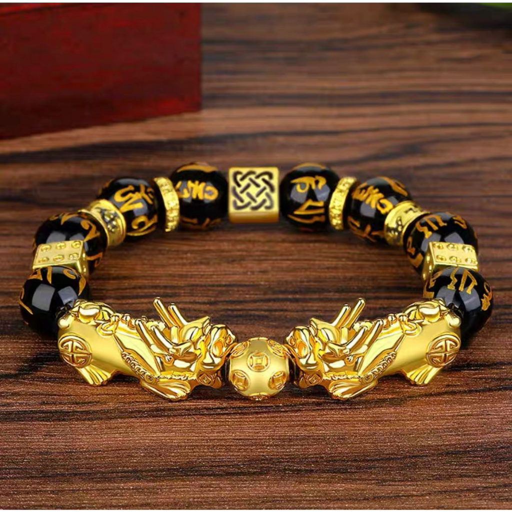 Feng Shui Black Obsidian Pixiu Wealth Prosperity 12mm Gold Dragon GypsyGemsJewelryBox Very well made.