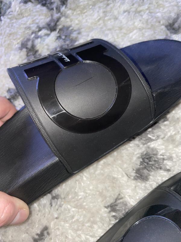 Salvatore Ferragamo Groove Black Gold slides sandals Men s Size 9 M Very well made.