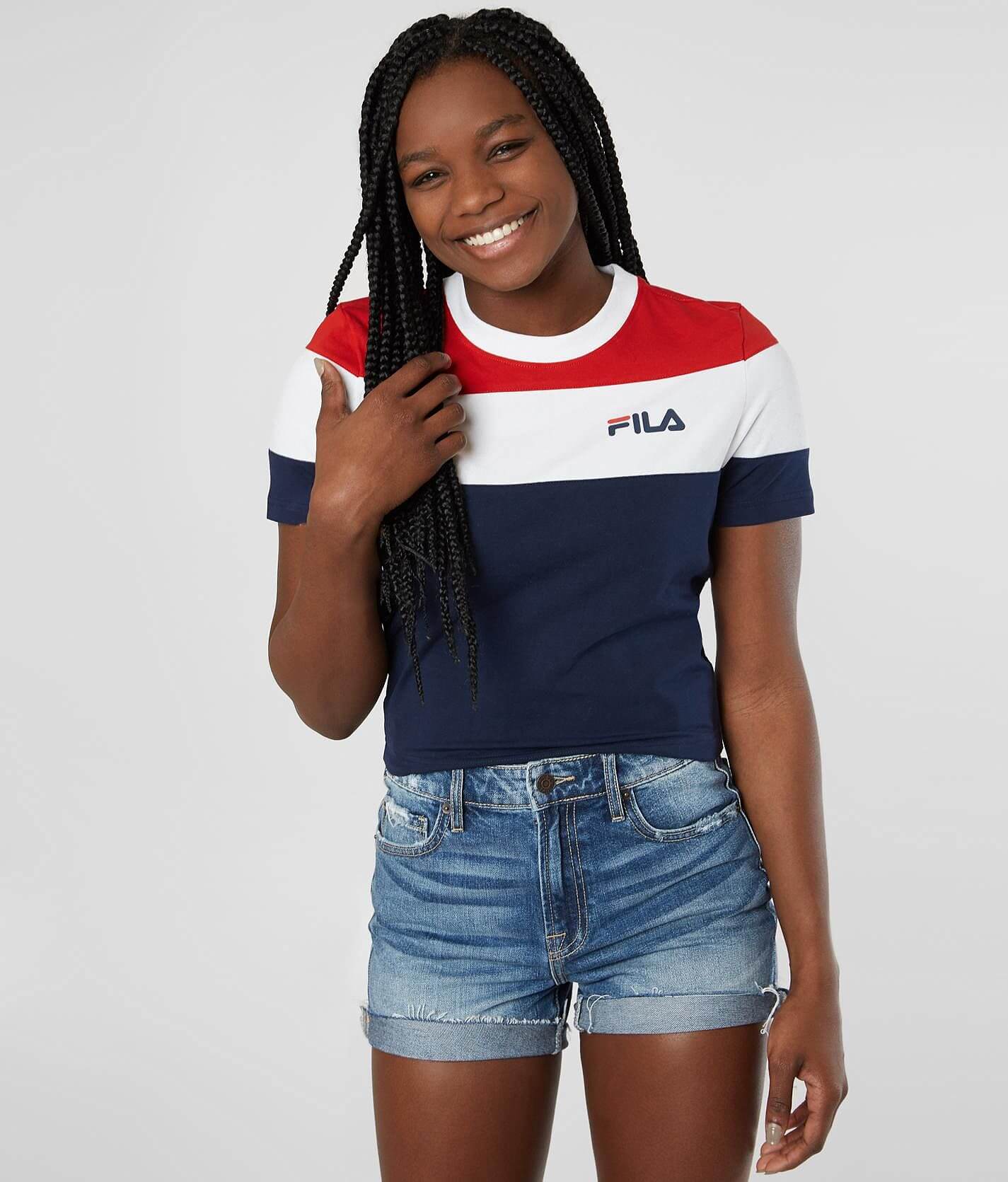 FILA Maya Cropped T Shirt Women s T Shirts in Peacoat Chinese Red White Buckle Very well made.