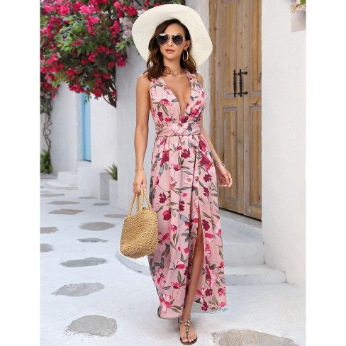 Womens Sexy Spaghetti Strap Deep V Neck Floral Boho Criss Cross Backless Chiffon Beach Party Long Maxi Dress Fruugo US Very well made.