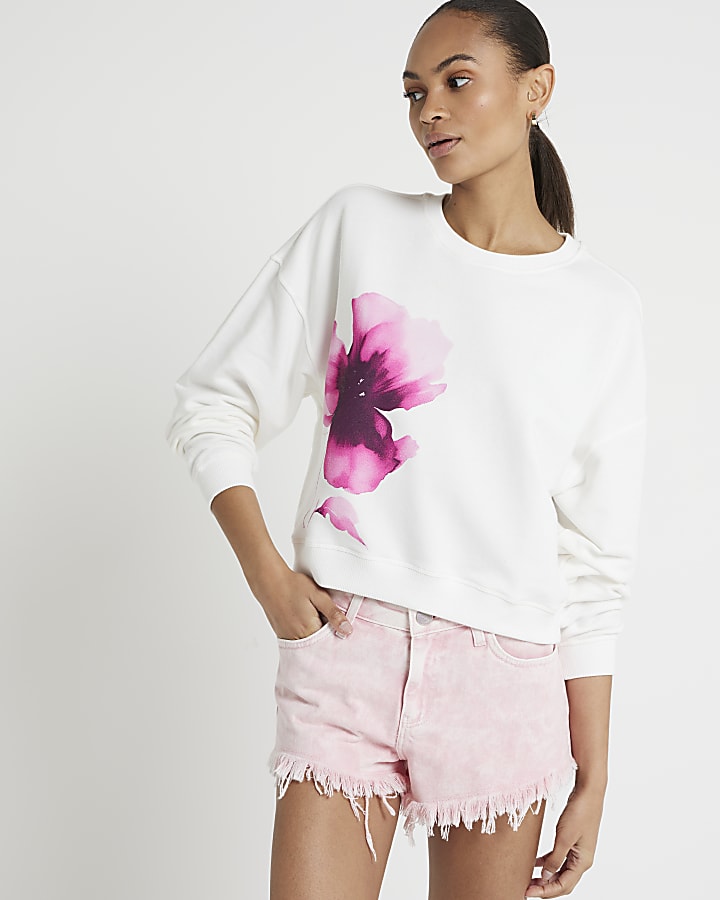 White Floral Print Sweatshirt River Island Very well made.