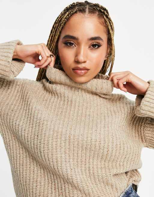 NA KD folded sleeve high neck jumper in beige Very well made.