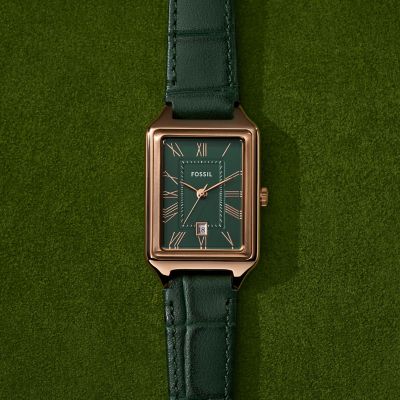 Raquel Three Hand Date Green Croco LiteHide Leather Watch ES5366 Fossil Very well made.