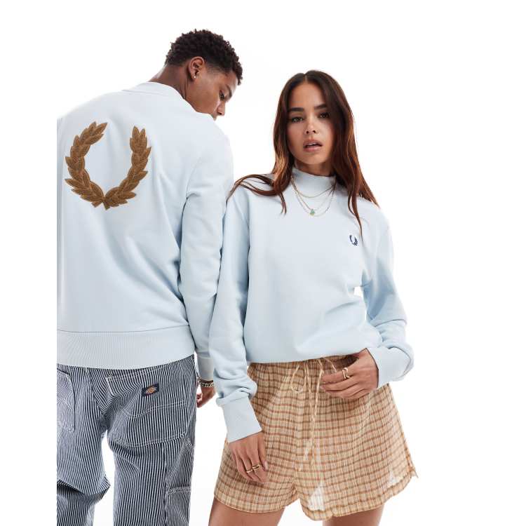 Fred Perry unisex laurel wreath high HYPEBAE sweatshirt in light blue T shirt Script Pale ClassicfuncenterShops Very well made.
