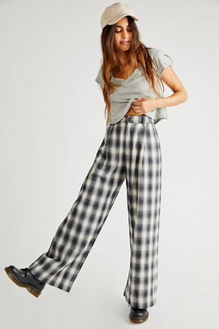 Free People Cool Harbor Plaid Wide leg Pants in Brown Lyst Very well made.