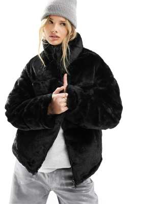 French Connection faux fur funnel neck jacket in black Very well made.