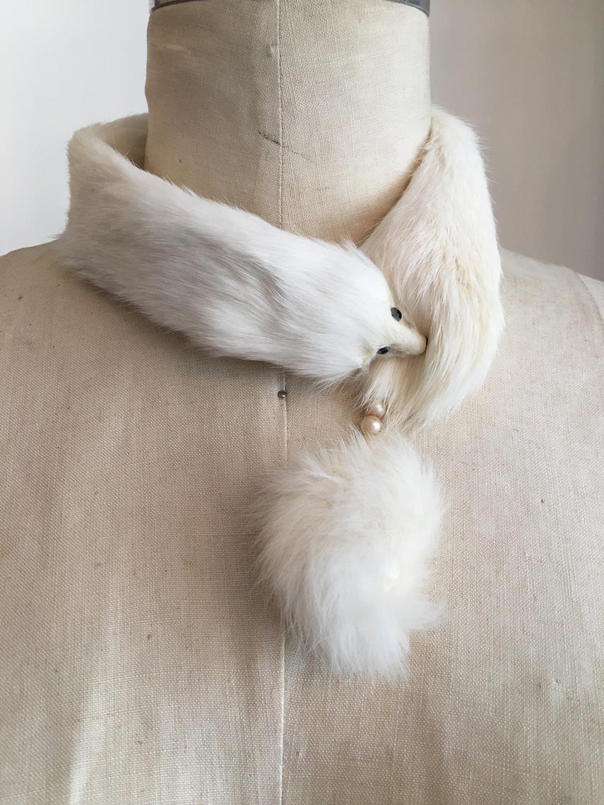 1950s fur collar white fur choker novelty necklace clip on Black Label Vintage Tacoma WA Very well made.