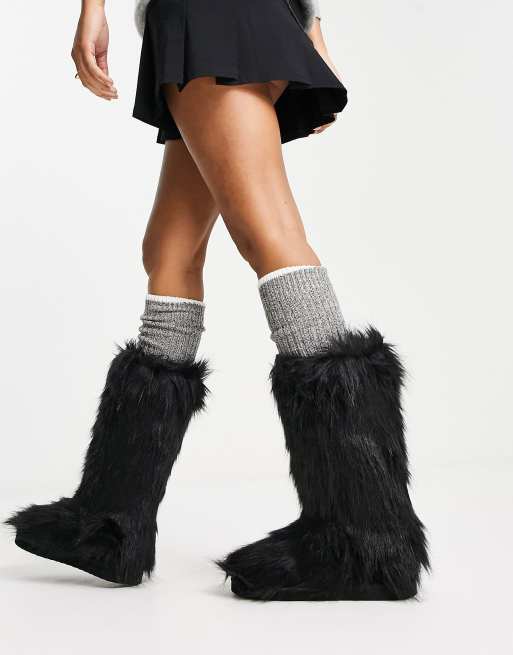 Monki furry boots in black Very well made.