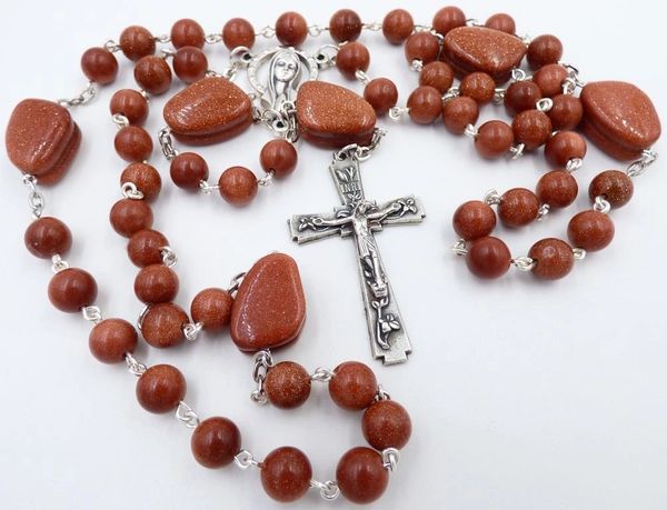 GOLDSTONE GEMSTONE ROSARY Classic and Sports Team Catholic Rosary Beads Very well made.