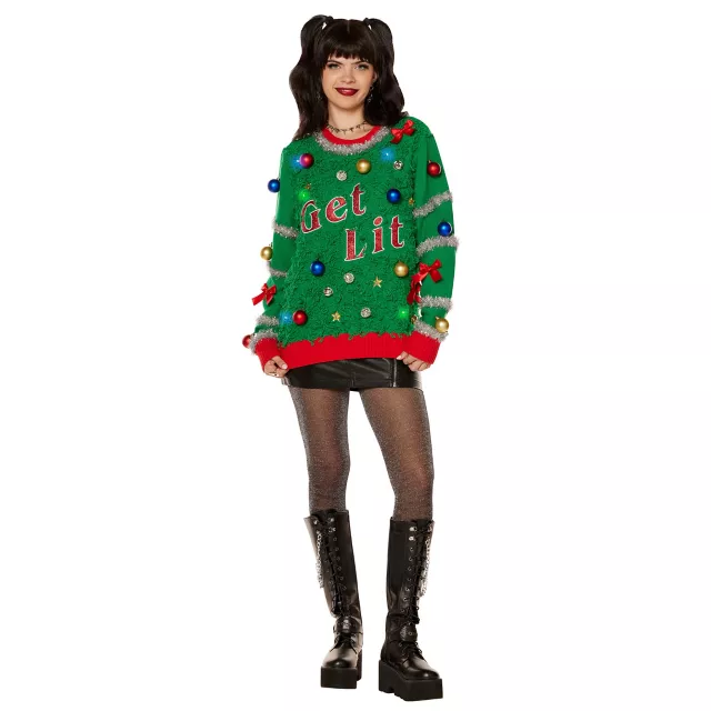 Womens LED Light Up Get Lit Christmas Tree Ugly Christmas Sweater Very well made.