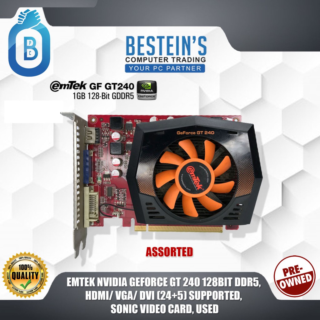 EMTEK NVIDIA GEFORCE GT 240 128BIT DDR5 HDMI VGA DVI 24 5 SUPPORTED SONIC VIDEO CARD USED Shopee Philippines Very well made.