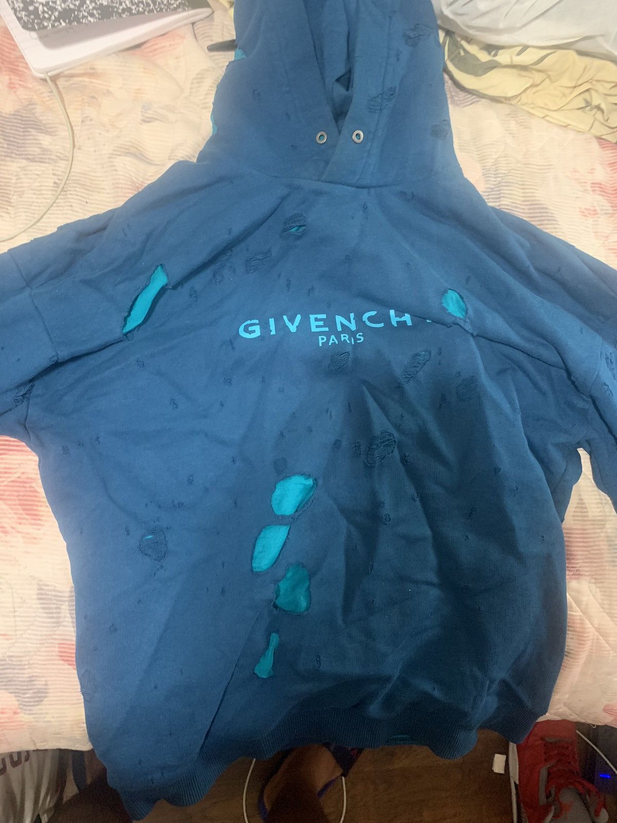 Givenchy ripped 2025 hoodie blue Very well made.