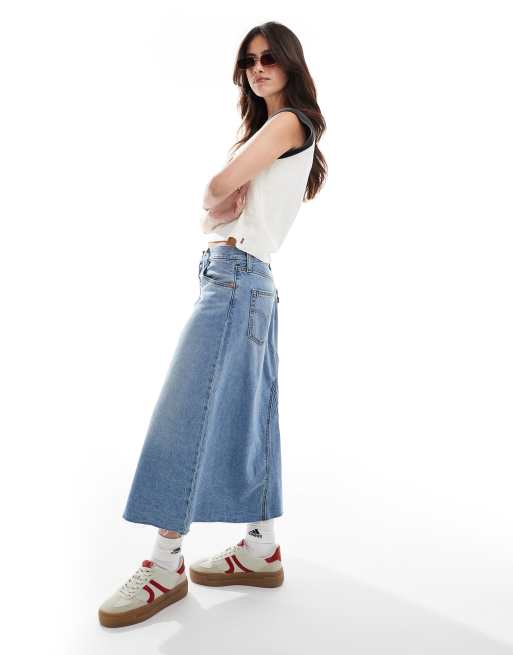 Levi s Gonna di jeans lunga svasata e destrutturata blu medio a vita alta Very well made.