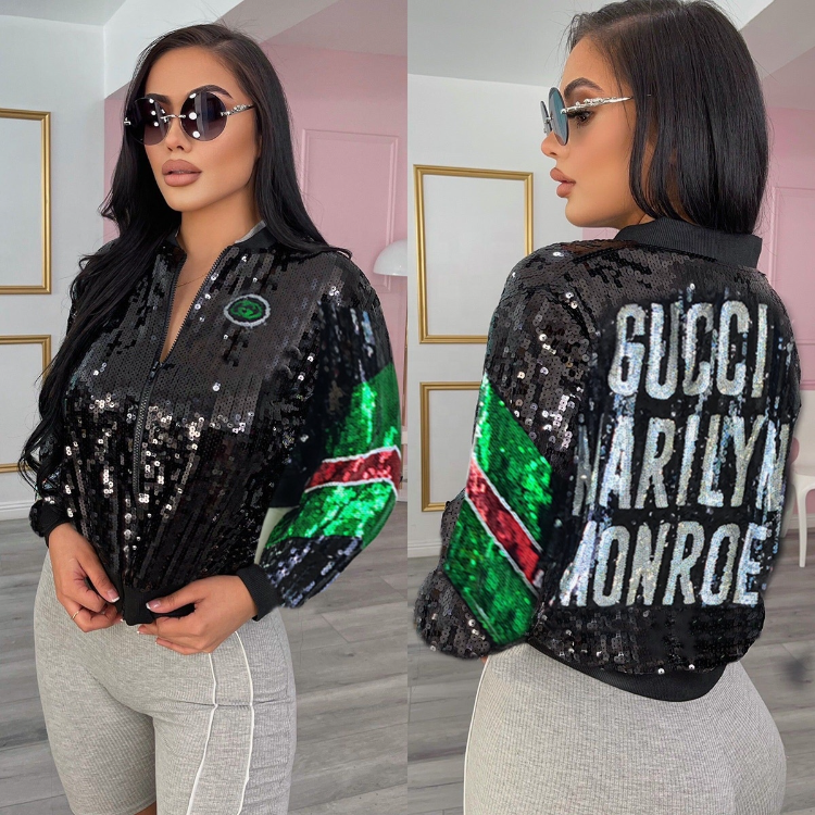 Fashion Womens Sequin Jacket Long Sleeve Front Zip with Ribbed Cuffs Outerwear Tops Very well made.