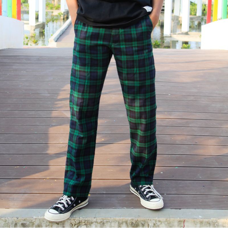 Tartan Navy Green tartan pants tartan pants Flannel motif Trousers vintage bootloop Shopee Philippines Very well made.