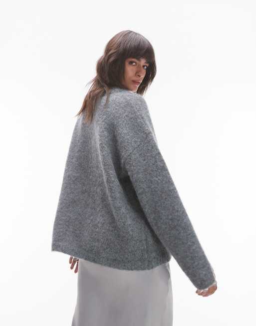 Topshop knitted boxy fluffy crew oversized jumper in grey ASOS Very well made.