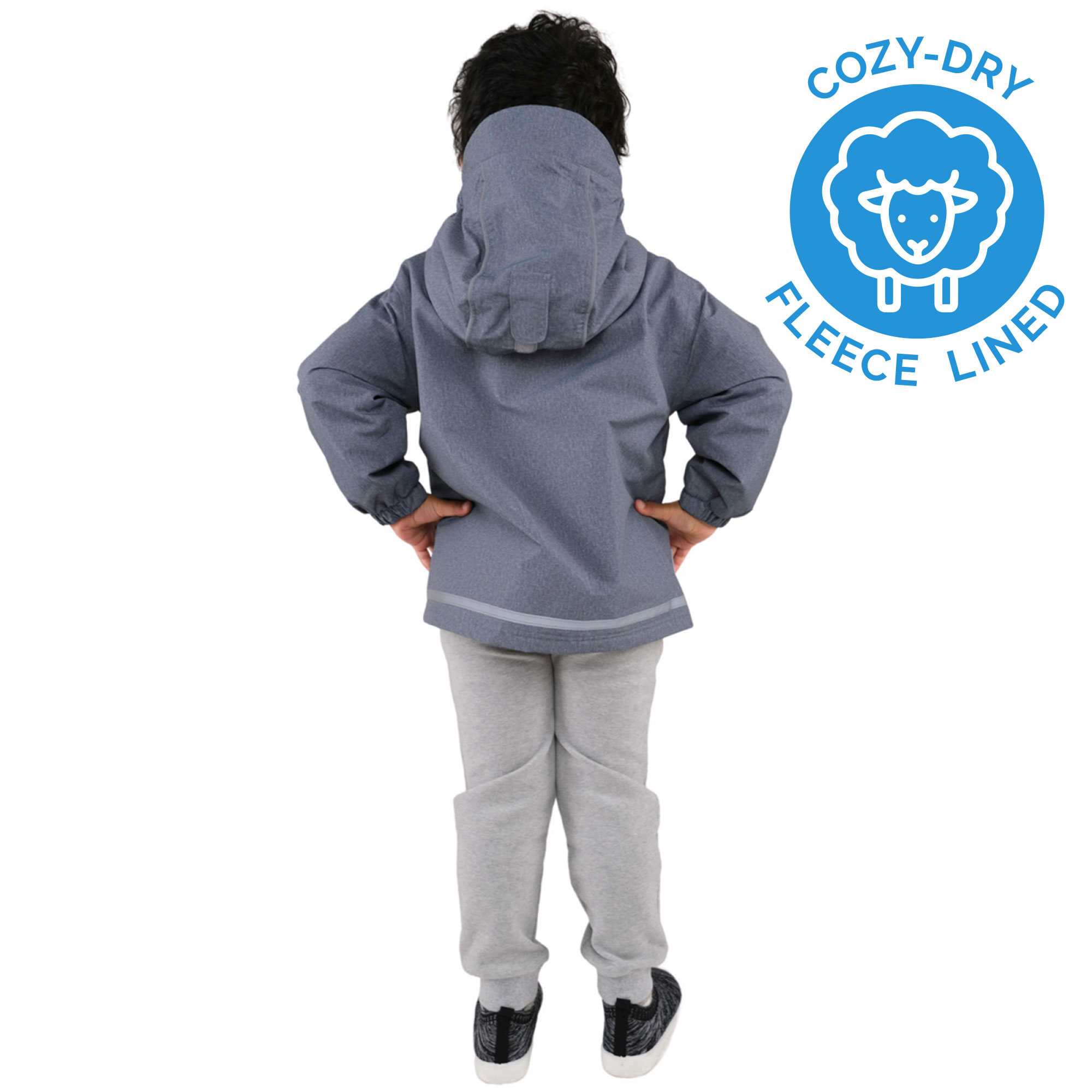 Kids Fleece Lined Rain Jackets Heather Grey Waterproof Coat Very well made.