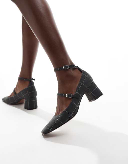 ASOS DESIGN Sheldon mary jane mid block heeled shoes in gray check Very well made.