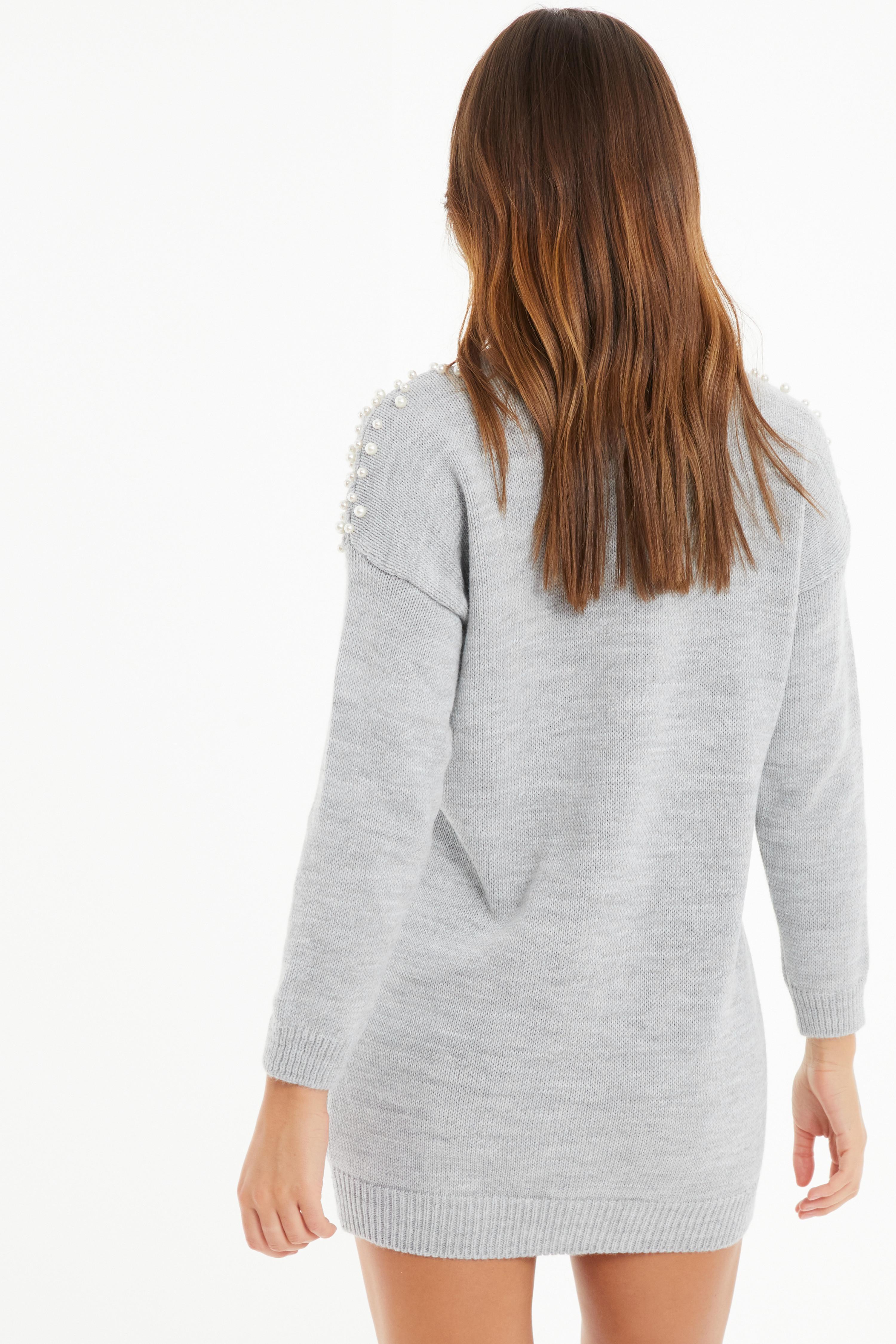 Grey Knitted Pearl Embellished Jumper Dress QUIZ Clothing Very well made.