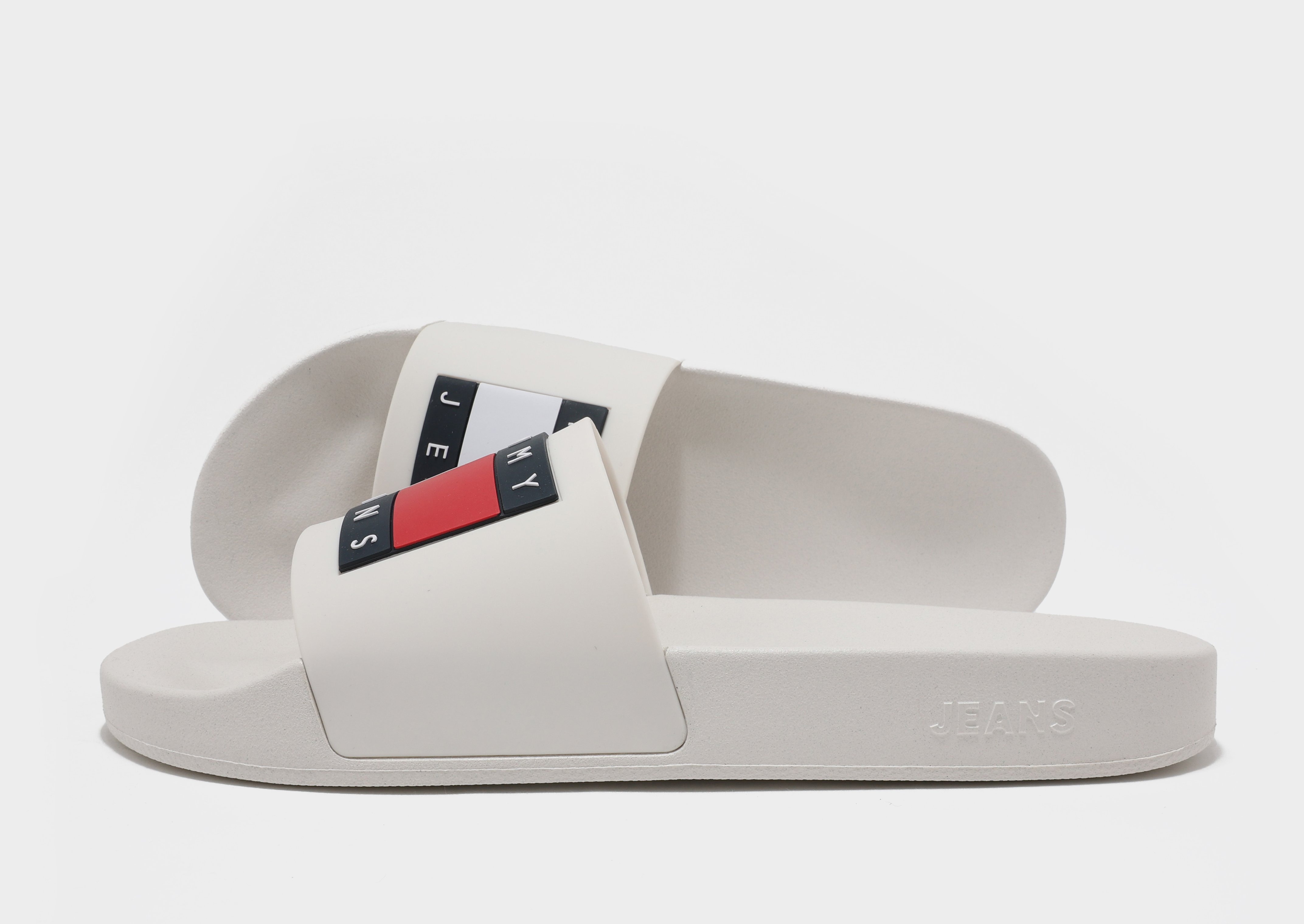 White Tommy Hilfiger Essential Flag Badge Pool Slides JD Sports Singapore Very well made.