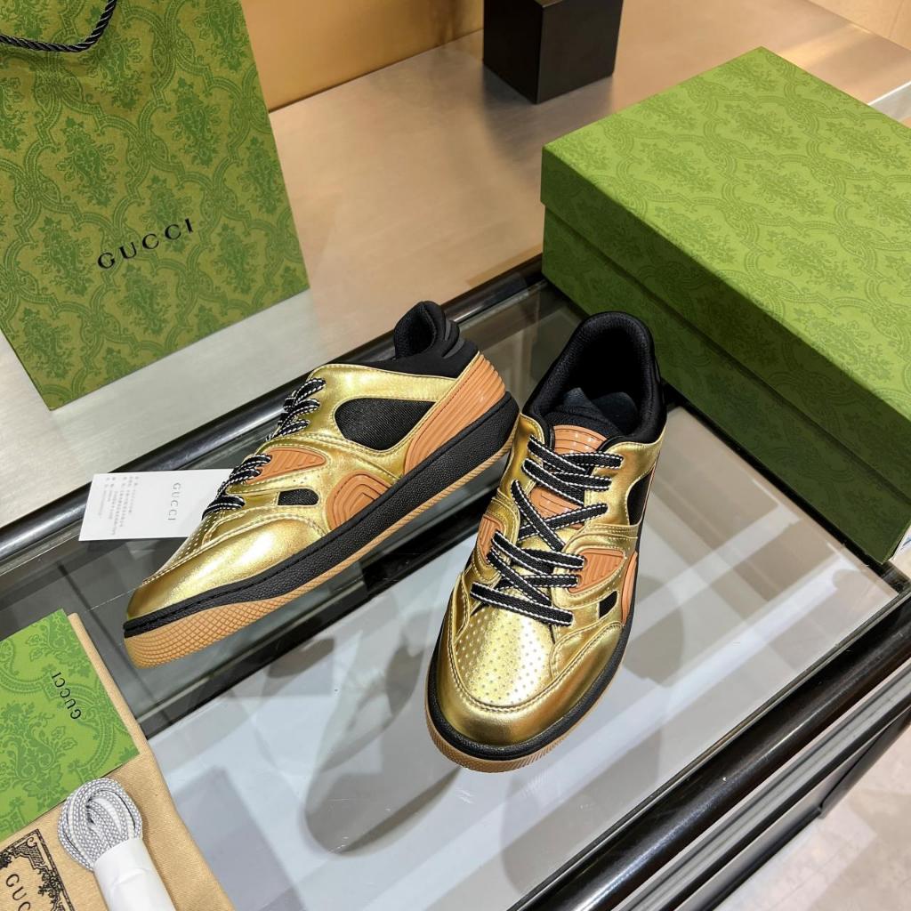 Gucci Low cut Sprots Basketball Shoes Casual Sneakers For Men Women Gold Orange Very well made.